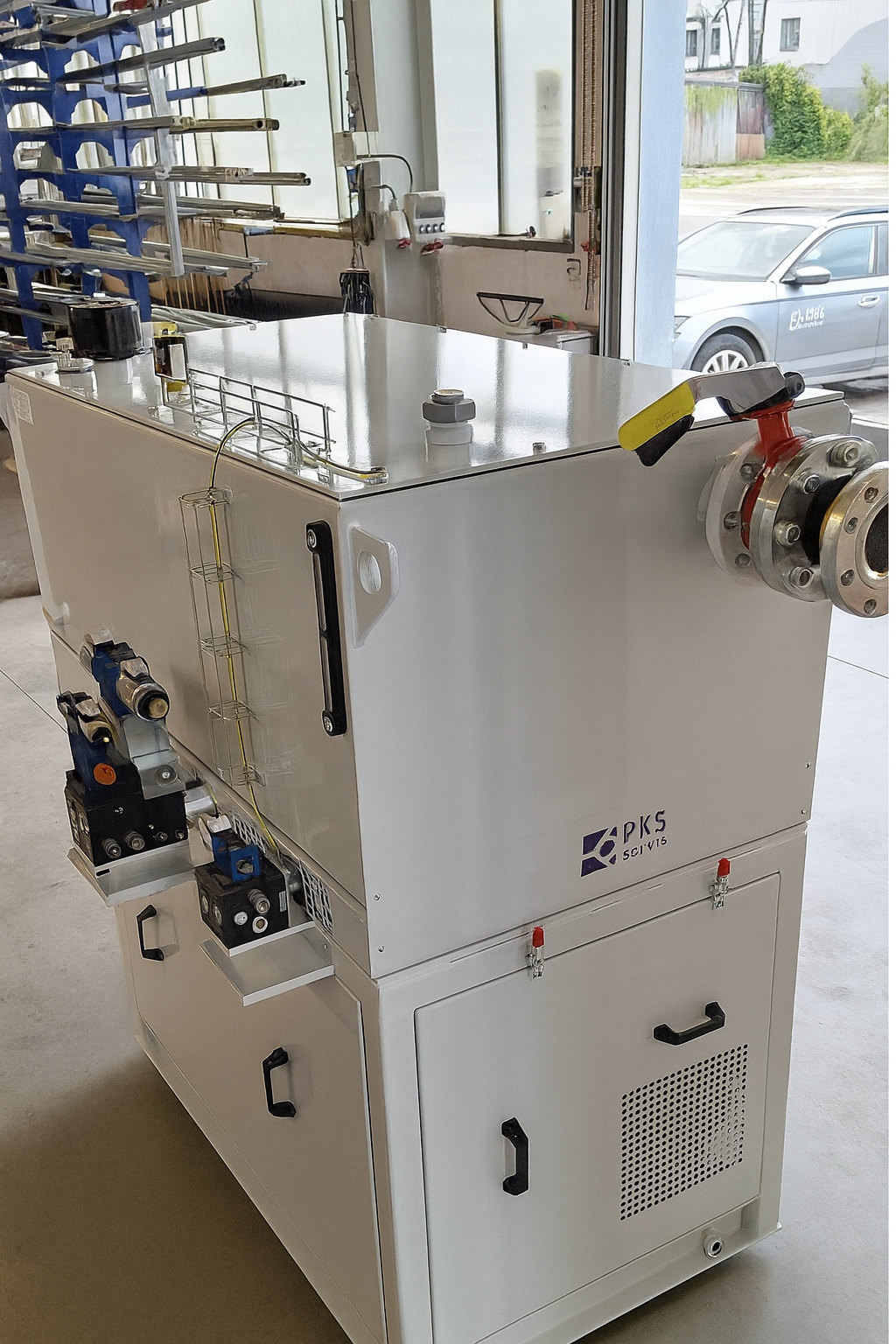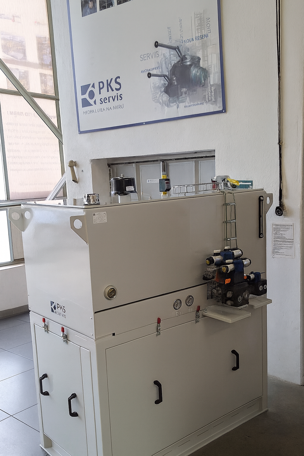 Poblíž obou čerpadlových jednotek jsou dva hydraulické ventily v blocích.