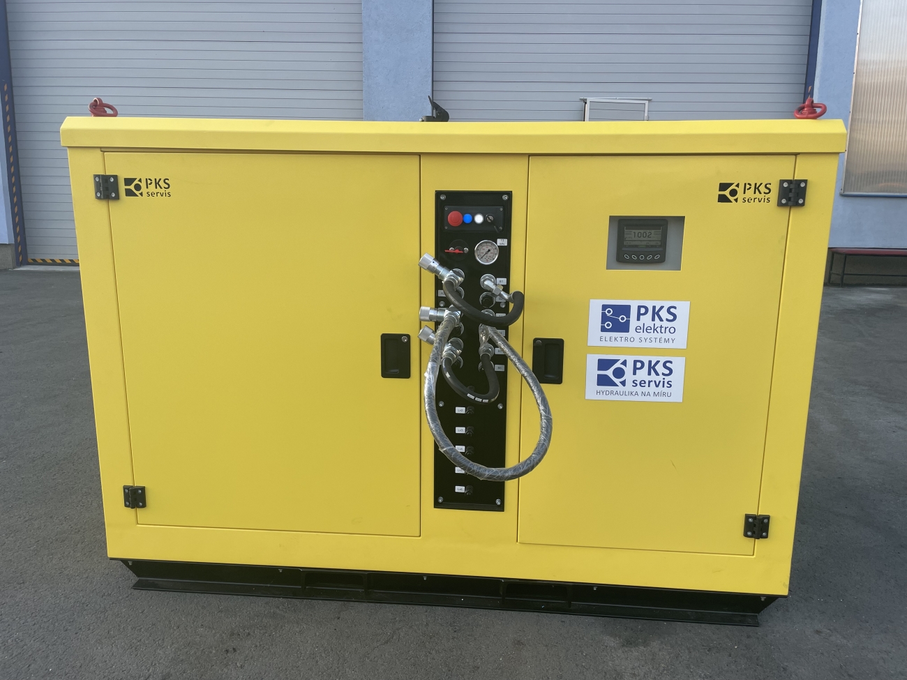 Tento hydraulický agregát je navržen na míru, k dálkovému ovládání vrátků, které manipulují s demoliční plošinou. Na demoliční plošině je pak umístěný bagr a další příslušenství potřebné pro postupnou demolici komínu od vrcholu směrem k patě. Náš hydraulický agregát možňuje ovládat až šest vrátků současně, a to ze vzdálenosti až 120 metrů. Je navržen jako kompaktní zařízení s krytem proti povětrnostním vlivům.