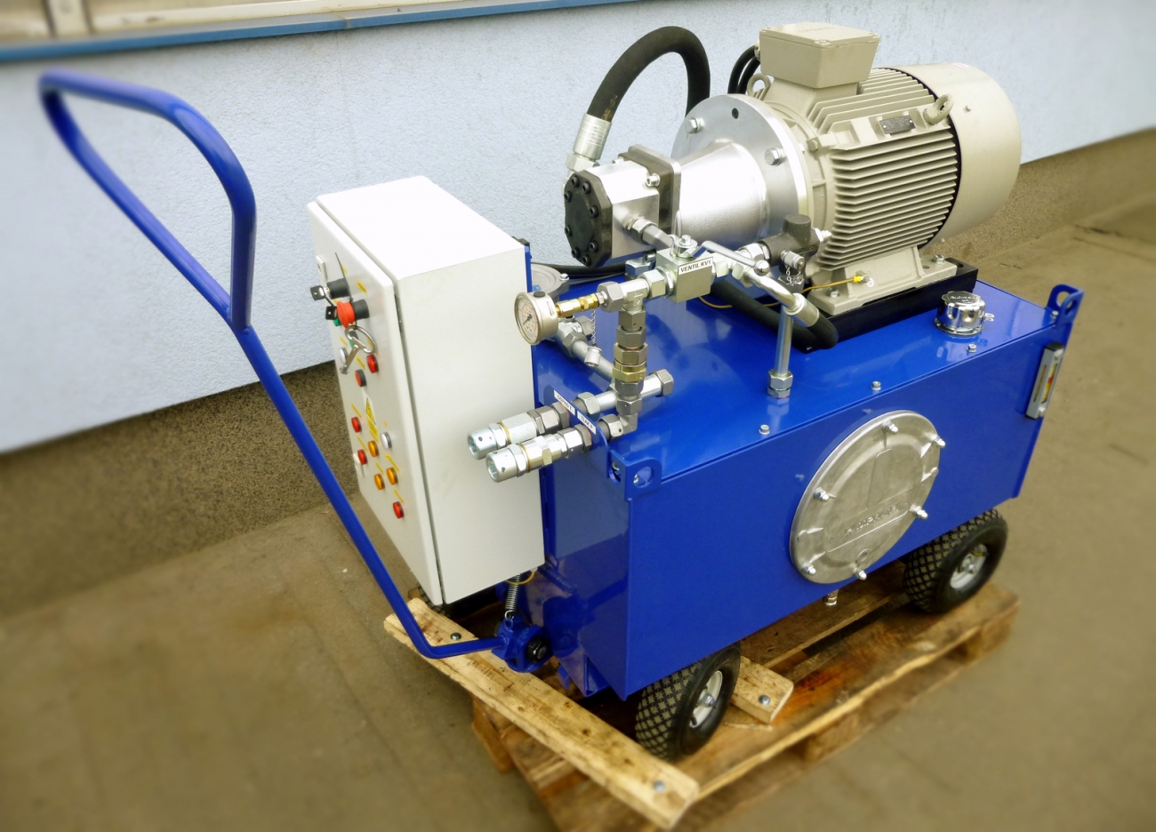 Na trubkovém rámu z bezešvých ocelových trubek vybaveném pojezdovými kolečky (2 ks otočné s brzdou, 2 ks pevné) je umístěna ocelová okapová vana, hliníková nádrž o objemu 30 dm3, elektro skříňka s hlavním vypínačem, elektrickým přívodním vodičem a držák výstupních hydraulických hadic. Na víku nádrže je umístěn elektromotor s držákem hydrogenerátoru, zpětný ventil, manometr, monoblokový rozváděč, plnící hrdlo se vzduchovým filtrem a odpadní filtr. Na boku nádrže je stavoznak se zabudovaným teploměrem.